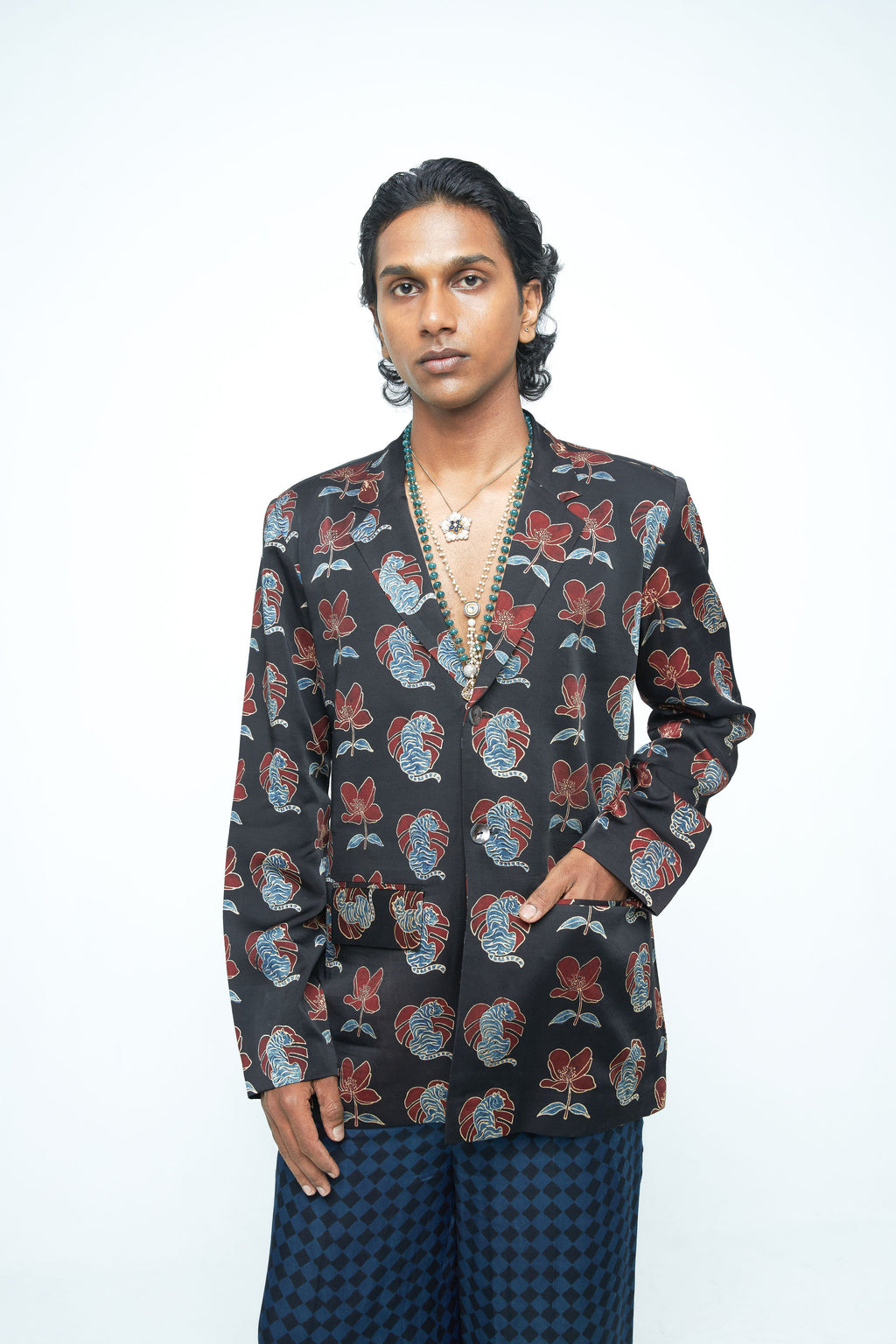 anushé pirani Modal Silk Men Charcoal Bold Blazer
