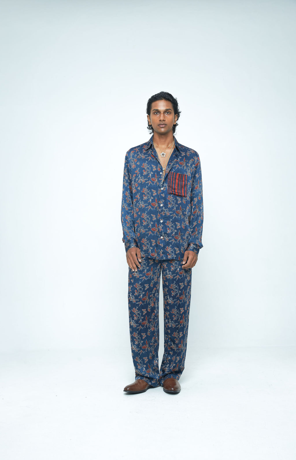 anushé pirani Modal Silk Men Indigo Flutter & Flow Shirt