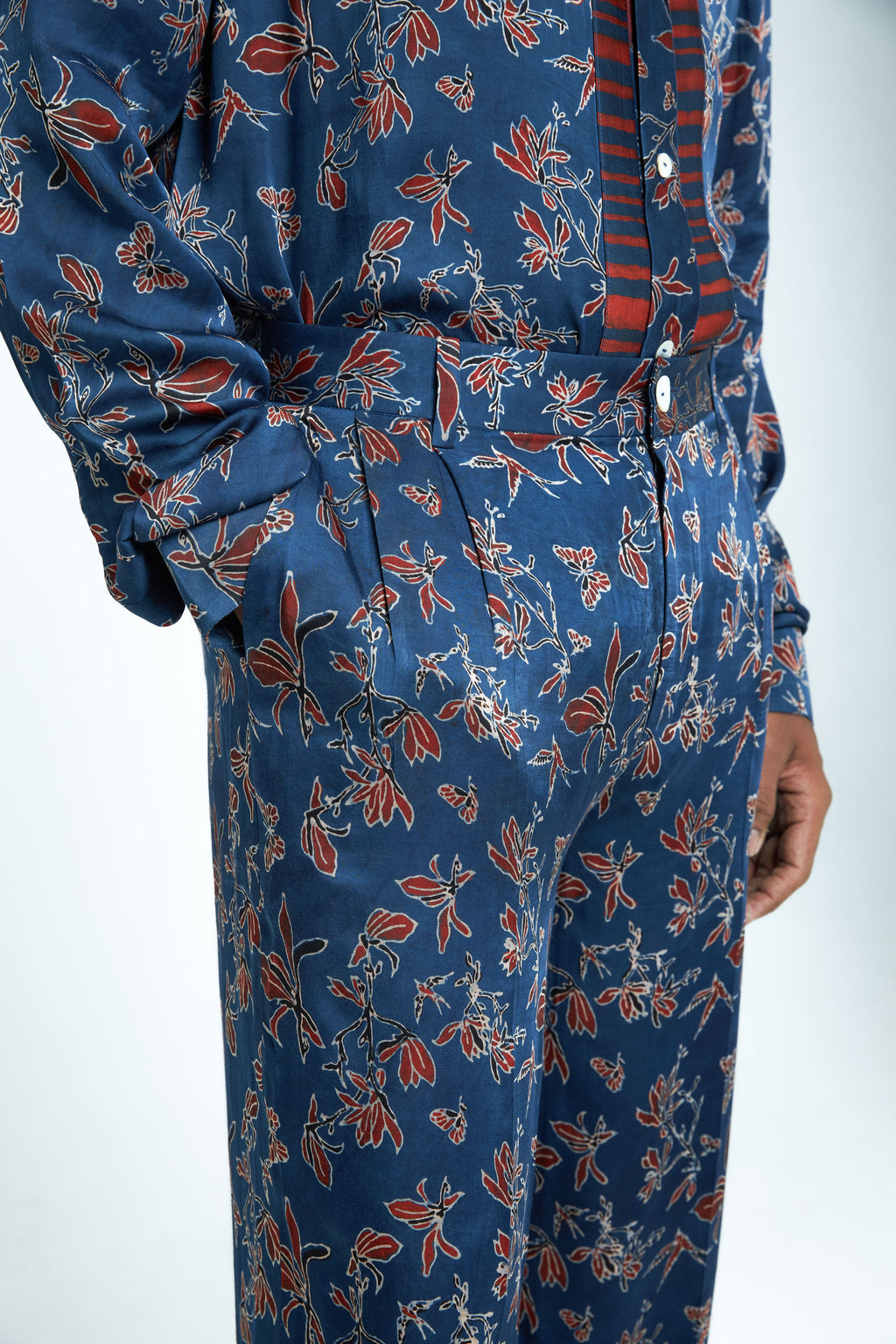anushé pirani Modal Silk Men Indigo Garden Pleat Pants