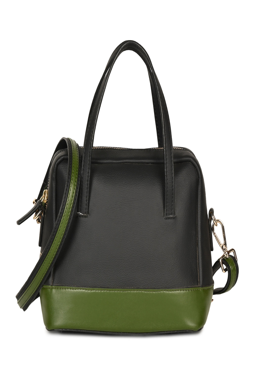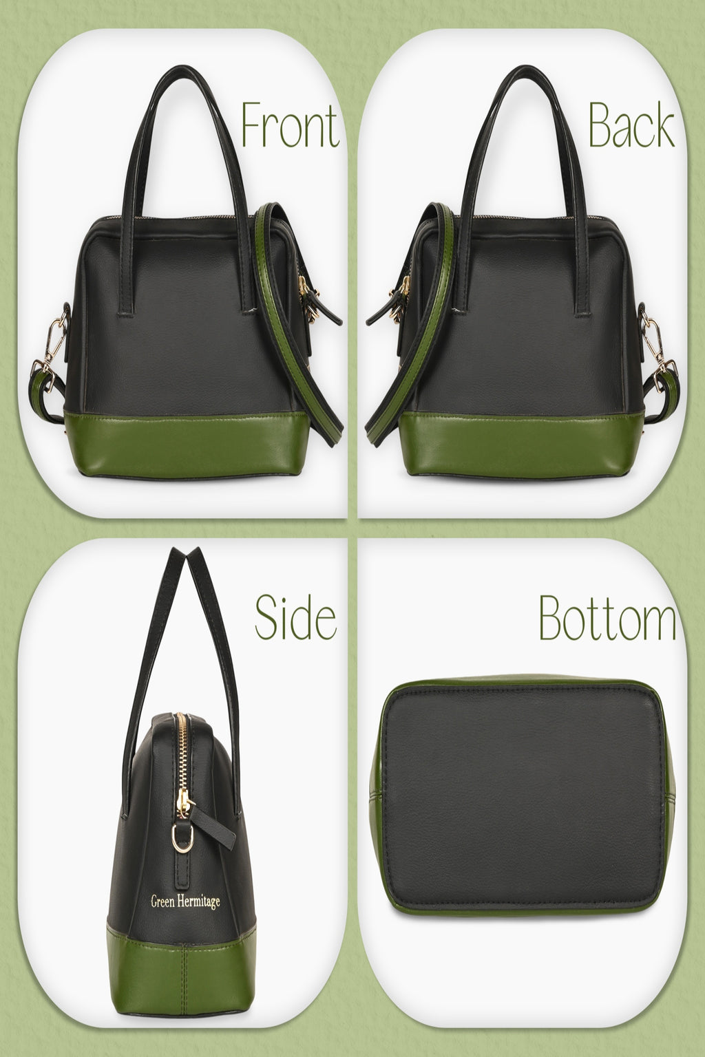 Green Hermitage Vanadey Vegan Leather Satchel/Crossbody Bag (Black & Green)