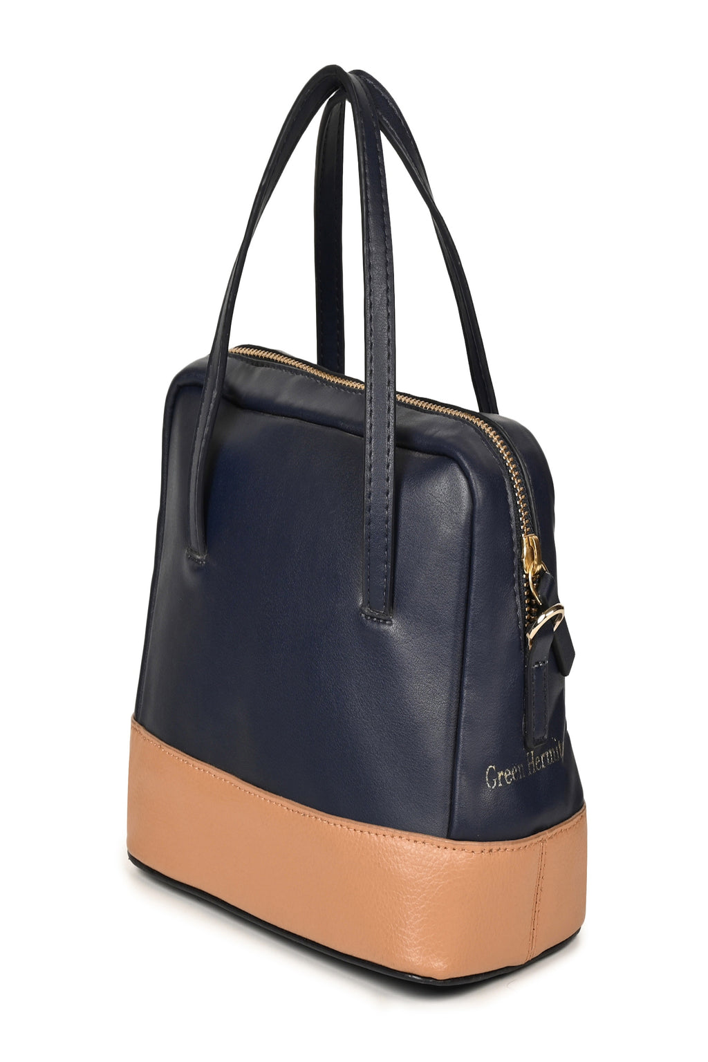 Green Hermitage Vanadey Vegan Leather Satchel/Crossbody Bag (Navy Blue & Caramel)